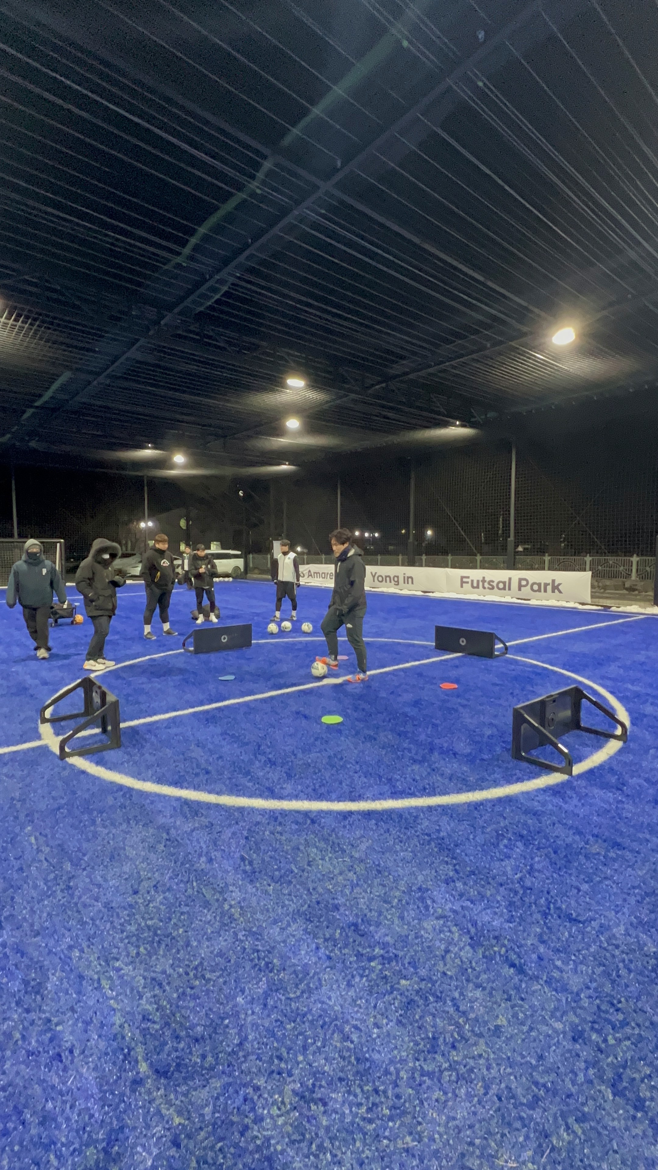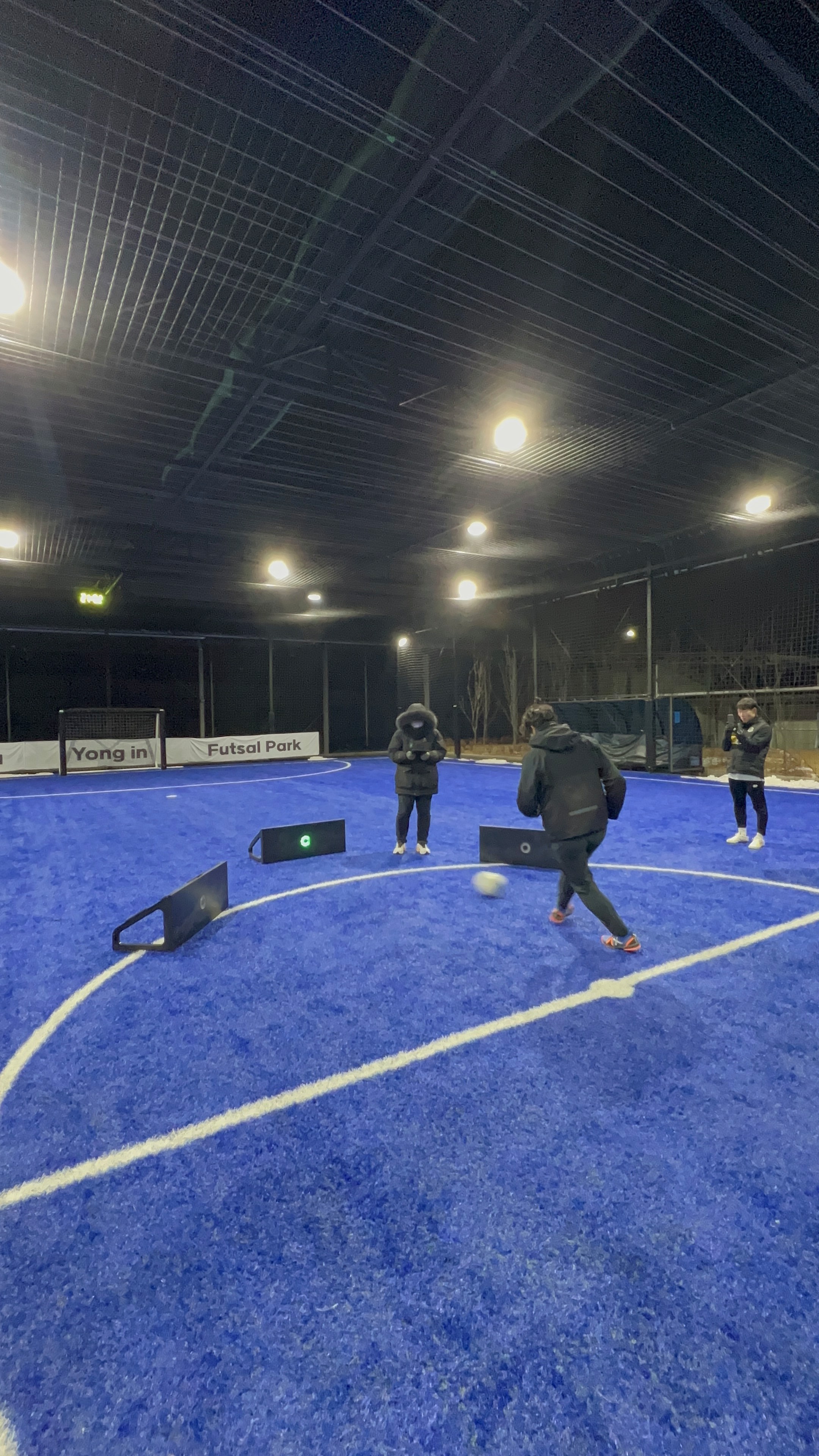 ⚠️풋살공의 파워와 스피드로 최대한 정중앙 타켓 및 저탄성 고려해 마중 나가는 방법으로 터치하여 컨트롤 패스해보고 비교 기록으로 반응속도 단축이 가능한지 여부 확인 필요